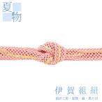 帯締め 夏用 伊賀組紐 ピンク 正絹 平組 レース 前沢工房 新品 未使用 並尺 お洒落着 単衣 夏着物 浴衣 カジュアル 和装 着物 No.8-0729