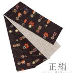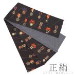 半幅帯 浴衣帯 ゆかた帯 桐生織 正絹 グレー 黒 金魚 鯉 魚 和柄 浴衣 おしゃれ 単衣帯 単衣 細帯 日本製 カジュアル 小紋 紬 No.6-1798