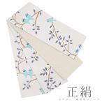 半幅帯 浴衣帯 ゆかた帯 桐生織 正絹 素色 グレー 鳥 千鳥 木 枝 葉 和柄 浴衣 おしゃれ 単衣帯 単衣 細帯 日本製 カジュアル No.6-1816