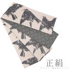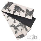 半幅帯 浴衣帯 ゆかた帯 桐生織 正絹 灰色 グレー オフホワイト カラス 烏 鳥 和柄 浴衣 おしゃれ 単衣帯 単衣 細帯 日本製 カ No.6-1820