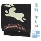 作り帯 お太鼓 生紬 名古屋帯 夏物 正絹 リサイクル 付け帯 中古 黒 兎 絞り 二部式 カジュアル 軽装帯 簡単 九寸 単衣 No.i6-2121