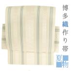 作り帯 お太鼓 博多織 名古屋帯 付け帯 夏物 正絹 リサイクル 中古 生成色 縞 軽装帯 二部式 カジュアル 単衣 八寸 夏 No.i6-2125
