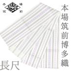 半幅帯 長尺 博多織 浴衣帯 博多帯 正絹 浴衣 白地 紫 三献上 本場筑前博多織 細帯 単衣帯 金証紙 夏祭り 花火大会粋 No.10-7248