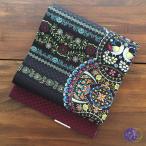 帯 召しませ花 京袋帯 正絹 染 新入荷 ポルスカフラワー 黒 京袋名古屋帯 名古屋帯 なごや帯 単衣 袷 着物 カジュアル レトロ 文様 孔雀 花 日本製 (TK-89-B)