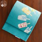 [夏帯] 夏名古屋帯 白くまキャンディ (麻/青緑色) リネン 日本製 名古屋帯 京袋帯 京袋名古屋帯 フルーツアイス 浴衣帯 単衣 浴衣 着物 召しませ花