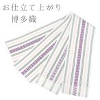 浴衣帯 半幅帯 博多織 正絹 浴衣 白地 紫 ピンク 三献上 仕立て上がり 本場筑前博多織 単衣帯 四寸 博多帯 日本製 粋 夏祭り No.10-6652