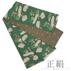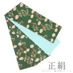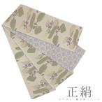 半幅帯 浴衣帯 ゆかた帯 桐生織 正絹 緑 白 カブ かぶ 蕪 野菜 葉 浴衣 おしゃれ 単衣帯 単衣 細帯 日本製 カジュアル 小紋 紬 No.6-1803