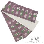 半幅帯 浴衣帯 ゆかた帯 桐生織 正絹 紫 葡萄色 花瓶 花 鉢 和柄 浴衣 おしゃれ 単衣帯 単衣 細帯 日本製 カジュアル 小紋 紬 No.6-1809