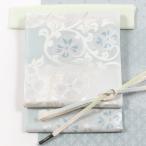 名古屋帯 正絹 九寸 青 水色 九寸 帯 < 雪うさぎ > 透かし織 紋唐草 栗山吉三郎 和染紅型 正絹 純絹織物 仕立て上がり 変わり全通 日本製 POINT