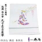 名古屋帯 正絹 夏 単衣 お仕立て込み 手刺繍 相良刺繍 白地 ホワイト 半円更紗文様 お太鼓柄 九寸