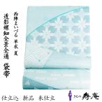正絹 袋帯 夏帯 ふくい 唐花横段ぼかし文 白×水色 フォーマル 夏の結婚式 単衣 夏 礼装 未仕立て