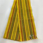 半幅帯 名品 縞 幾何学 山吹色 綿 中古