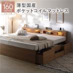照明宮付 チェスト ベッド ショート丈クイーン160(SHSS+SHSS) ナチュラル 薄型国産ポケットコイルマットレス付き 連結 収納ベッド すのこ 大容量 収納付 コン...