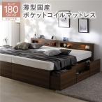照明宮付 チェスト ベッド ショート丈キング180(SHSS+SHS) ブラウン 薄型国産ポケットコイルマットレス付き 連結 収納ベッド すのこ 大容量 収納付 コンセン...
