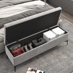 【並行輸入品】収納オットマンベンチ、収納ベンチベルベット布張りベッドベンチ、プレミアム収納チェストベッドルームベンチ、組み立て不要 ライトグレー