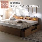 照明宮付 チェスト ベッド 通常丈ワイドキング200(S+S) ナチュラル 薄型国産ポケットコイルマットレス付き 連結 収納ベッド すのこ 大容量 収納付 コンセント...