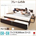 (タイムセール中) (組立設置付) 大容量収納付きチェストベッド ワイドK200(S×2) ベッドフレームのみC+Cタイプ