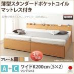 【11/10 まで5%OFF!】 お客様組立 大容量収納ファミリーチェストベッド 薄型スタンダードポケットコイルマットレス付き A+C ワイドK200
