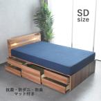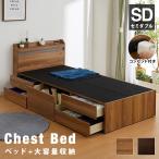 9日LYP17%〜 ベッド セミダブル 収納 マットレス付き セミダブルベッド 棚 コンセント 2口 ポケットコイル 収納付き 引き出し 大容量 チェストベッド 宮棚 収