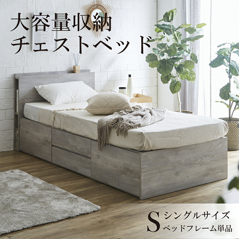 【初売り1/4まで10%OFFクーポン配布】収納付きベッド チェストベッド シングルベッド 大容量 シングル ベッドフレーム すのこ コンセント付き 大容量収納 ベッド 収納ベッド 収納付き 収納ベッド グレー 木目 フルオープンレール おしゃれ 送料無料