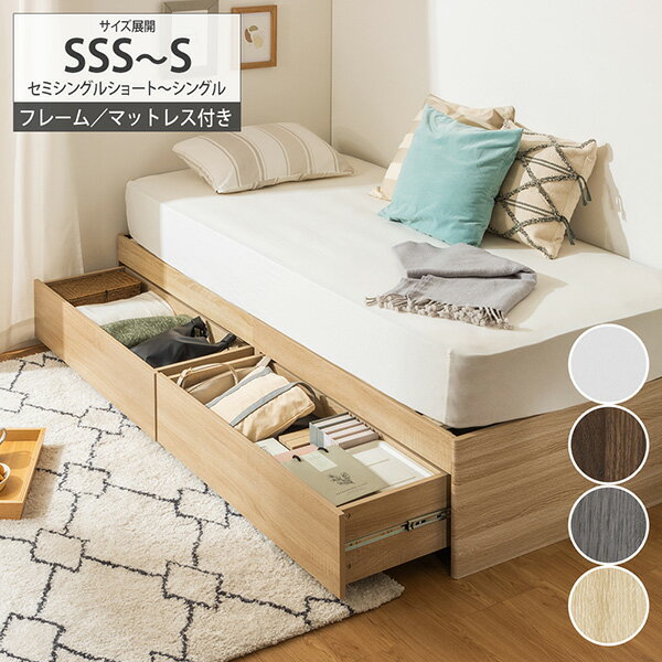 大容量 ヘッドレス ヘッドレスベッド 収納ベッド セミシングルショート チェストベッド 収納付き 引き出し付き 2杯ベッド すのこベッド 容量約164L