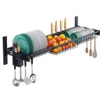 【並行輸入品】調節可能 シンク上 食器乾燥ラック ブラック 大容量 壁掛け食器乾燥機ラック 吊り下げ用具ホルダー付き キッチン収納オーガナイザー