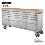 キャビネット 幅199cm ツールキャビネット ローラー 引き出し15個 キャスター付き 鍵付き 工具 収納 大容量 おしゃれ ステンレス 天然木 レジ 什器 お店
