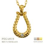 ペガサス 馬蹄 メンズ ネックレス 18金 ゴールド 1石 ダイヤモンド K18 蹄鉄 ホースシュー アズキ チェーン 50cm 1.4mm幅 男性用 おすすめ 受注製作