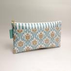 ポーチ ダマスク柄ポケット付き オールドブルー 青 通帳ポーチ / マスクポーチ【受注製作】