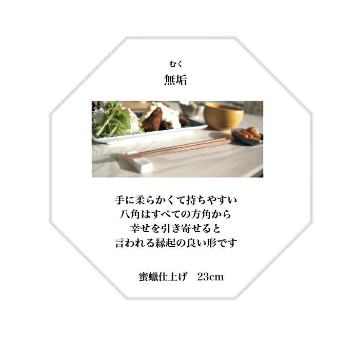 無垢 むく 長さ23cm 800 箸 天然木 蜜蝋仕上げ 手作り 木箸 八角箸 日本製 軽い 疲れない お箸 プレゼント お祝い 誕生日 結婚 贈り物 記念品 縁起のいい お礼 天然木箸 つまみやすい はし 木 ギフト シンプル メープル ウォルナット 国産箸 受注製作 OPP袋入り