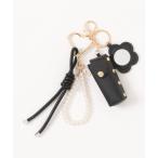 チャーム ミラー付き リップケース バッグチャーム キーホルダー|リップホルダー 口紅 パール スマホストラップ レディース