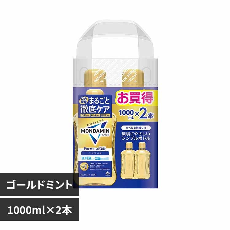 マウスウォッシュ 洗口液 口臭 モンダミン プレミアムケア ゴールドミント 1000mL×2本 低刺激タイプ 口臭対策 アース製薬