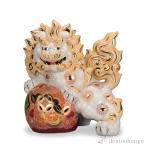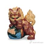 月見獅子 交趾 11号 ( 木札名入れ有料 置物 玄関 受付 風水 幸運 九谷焼 結婚 出産 内祝い 引き出物 金婚式 誕生日プレゼント 還暦祝い 古希 喜寿 米寿 退職 )