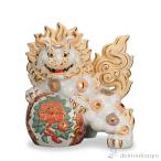 牡丹獅子 盛 13号 ( 木札名入れ有料 置物 玄関 受付 風水 幸運 九谷焼 結婚 出産 内祝い 引き出物 金婚式 誕生日プレゼント 還暦祝い 古希 喜寿 米寿 退職 )