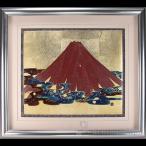 九谷焼 陶額 金箔赤富士 ガラス付 ( お祝い 取引先 周年記念 創立記念 竣工記念 アートパネル 九谷焼 周年 創立 上場 竣工 開店 事務所移転 開業 プレゼント )