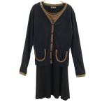 美品 FOXEY NEW YORK ニューヨーク ストレッチ カーディガン+ノースリーブワンピース アンサンブル 36468 サイズ40 ブラック レディース 古着 中古