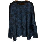 美品 pas de calais パドカレ リーフプリントプルオーバー ロングスリーブ ワイド カットソー 1449 サイズ36 ネイビー レディース 古着 中古