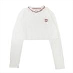 新品同様 MIUMIU ミュウミュウ 22aw クロップド ロング Tシャツ カットソー 長袖 ロゴ ワッペン トリコロール S 白 ホワイト レディース 古着 中古