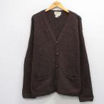 XL/古着 エディーバウアー 長袖 ニット カーディガン メンズ 90s ヒジ当て スエード使用 ウール 濃茶 ブラウン 25oct03 中古 トップス
