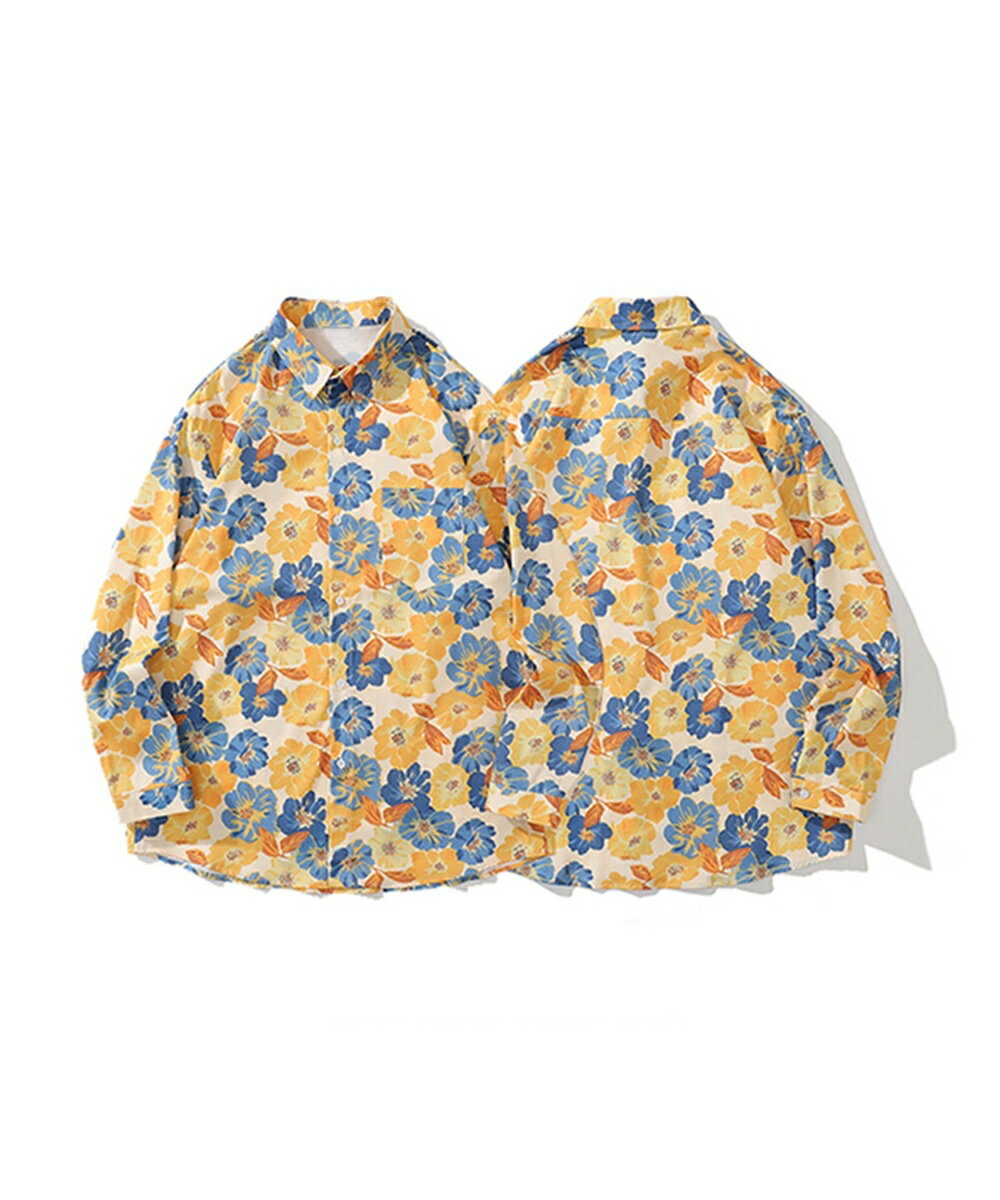 オーバーサイズ シャツ メンズ 春 ビッグシルエット シャツ メンズ 総柄 シャツ メンズ 花 総柄 シャツ 古着 長袖 メンズ 長袖 カジュアルシャツ メンズ 長袖 シャツ メンズ 長袖 ゆったり 春 トップス 韓国 ファッション 秋服 秋 秋冬 メンズファッション