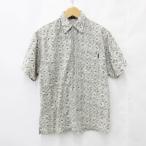 トニーホーク TONY HAWK 古着 シャツ カジュアルシャツ 半袖 総柄 スカル ロゴプリント グレー 緑 グリーン L メンズ