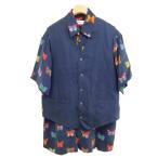 PELO Euro vintage ユーロ古着 シャツ ジレ ベスト 2点セット 蝶柄 レーヨン 半袖 M 48 ネイビー系 メンズ