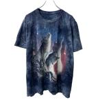 半袖 ウルフ プリントTシャツ 2XL〜 ネイビー タイダイ アニマル 古着卸 アメリカ仕入 a705-6156