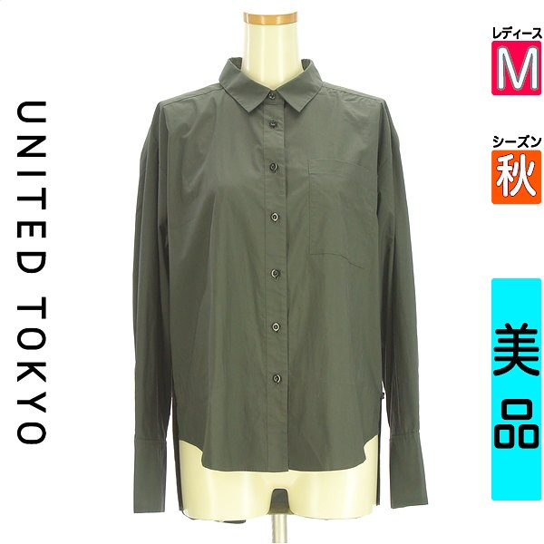 \14周年感謝祭★15%OFFクーポン/ ユナイテッドトウキョウ UNITED TOKYO カジュアルシャツ レディース 秋 長袖 グレー M サイドボタンシャツ 【中古】【古着】【セール】