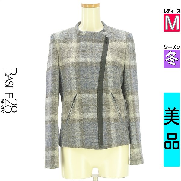\14周年感謝祭★15%OFFクーポン/ バジーレ28 BASILE28 ジャケット レディース 冬 グレー M チェック柄ウール混ジャケット 【中古】【古着】【セール】