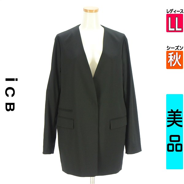\14周年感謝祭★15%OFFクーポン/ アイシービー iCB ジャケット レディース 秋 ブラック LL ノーカラージャケット 【中古】【古着】【セール】
