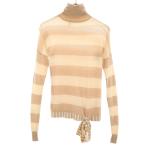 ARMANI JEANS アルマーニジーンズ カシミヤブレンド ボーダー柄 長袖 タートルネック セーター 38 ベージュ ニット レディース 古着 中古