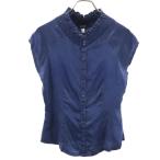 ARMANI JEANS アルマーニジーンズ ノースリーブ シルク シャツ 4 ネイビー レディース 古着 中古