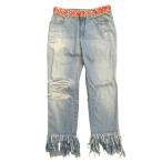 良品 REPLAY リプレイ KELLIGRAY フリンジ デニム パンツ ジーンズ クロップド 刺繍 W25L30 インディゴ レディース 古着 中古