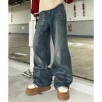 【10%OFFクーポン!3/26(木)1:59まで】improves デニムパンツ メンズ クラッシュ ダメージ加工 ワイドパンツ ストレート ジーンズ ストリート アメカジ カジュアル 韓国ファッション スケーター 古着MIX パンツ・ズボン